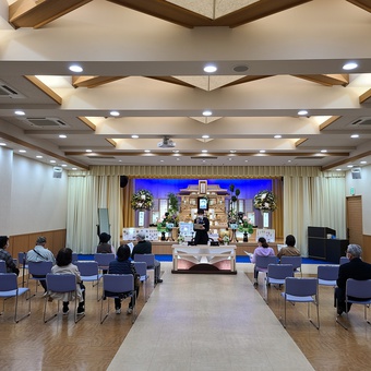 館内では、家族葬・親族葬にご利用いただける「プレミアム祭壇」を展示し、